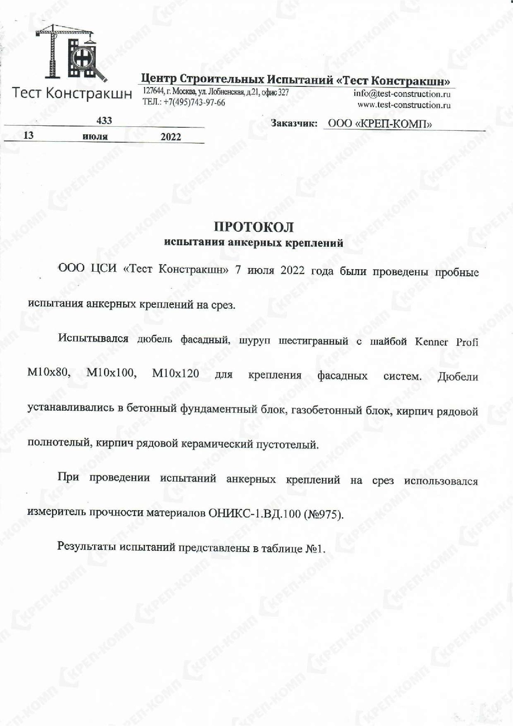 • Скачать Протокол испытания анкерных креплений