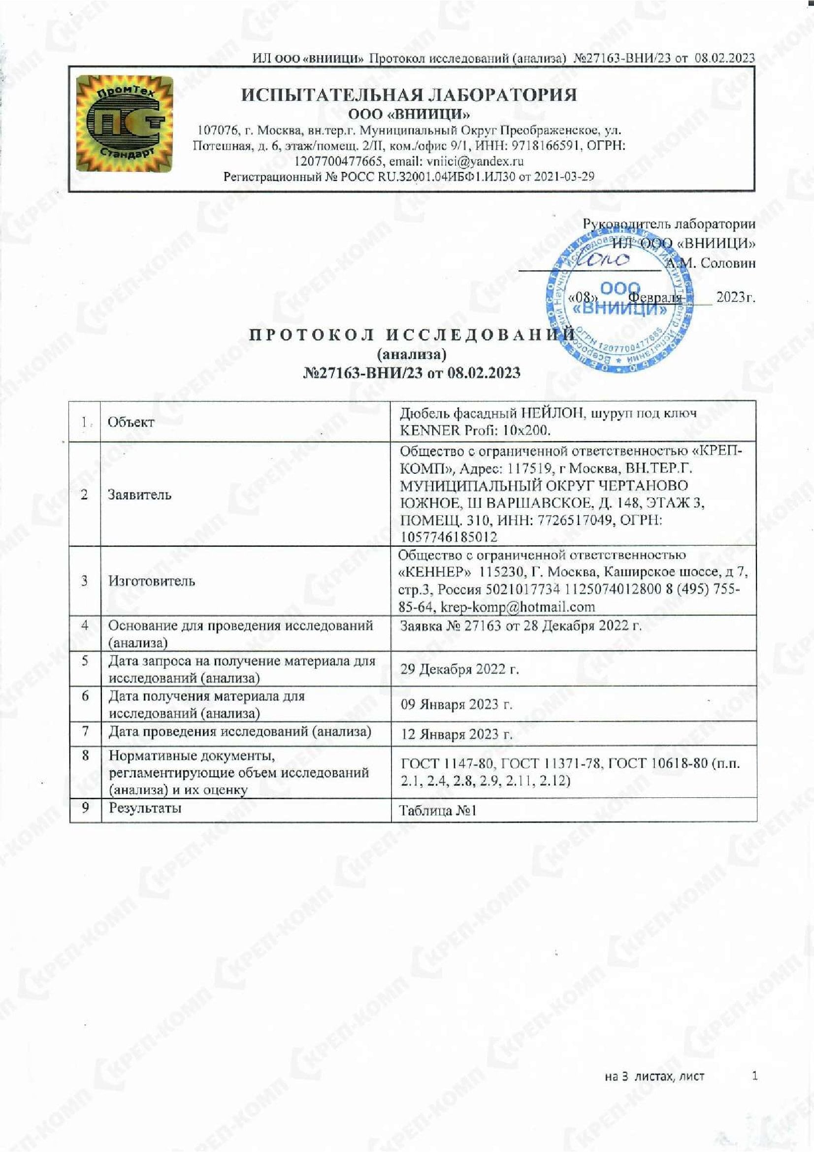 • Скачать Сертификат соответствия на дюбеля кровельные